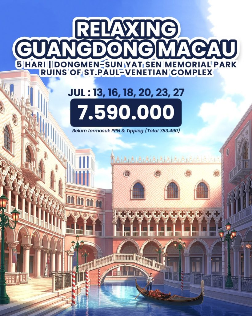 Ingin liburan yang tidak terburu-buru tapi tetap penuh destinasi ikonik? Tour Relaxing Guangdong Macau adalah pilihan tepat buat kamu yang ingin menikmati suasana kota dengan nyaman dan menyenangkan!
