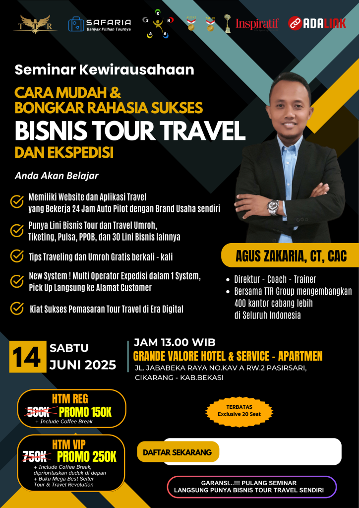 GOAL SEMINAR: “Pulang Seminar bisa langsung menjadi Pengusaha Tour Travel & Ekspedisi” dengan Branding anda sendiri.