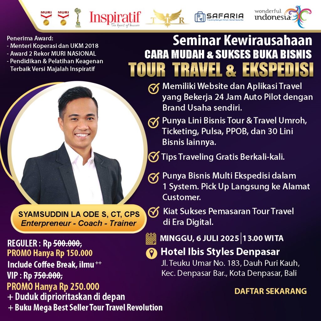 GOAL SEMINAR: “pulang seminar bisa langsung menjadi pengusaha tour travel & ekspedisi” dengan branding anda sendiri