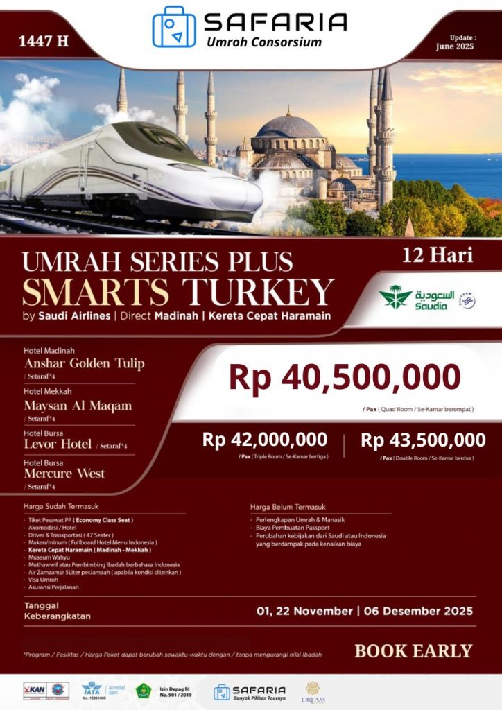 Nikmati perjalanan spiritual penuh berkah sekaligus wisata bersejarah ke Turki bersama Safaria Umroh Consortium!
